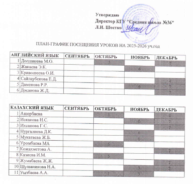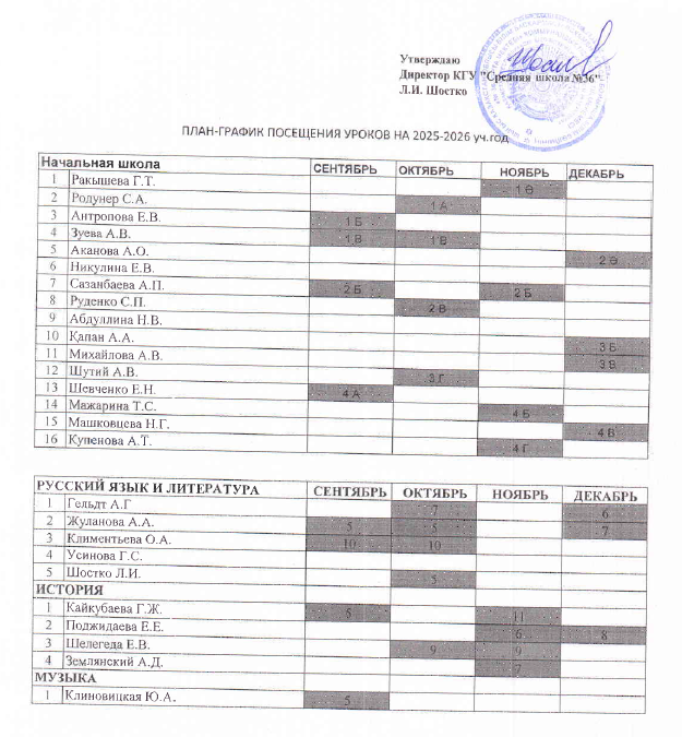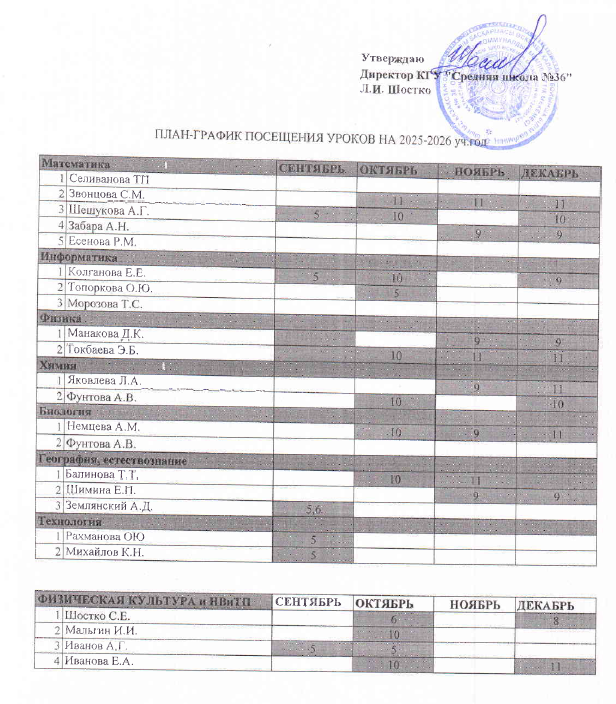 Графики посещения уроков согласно Плану внутришкольного контроля на 2025-2026 учебный год (1 полугодие)