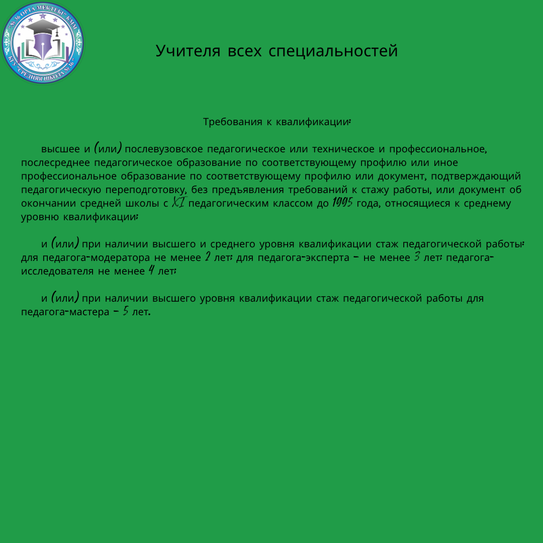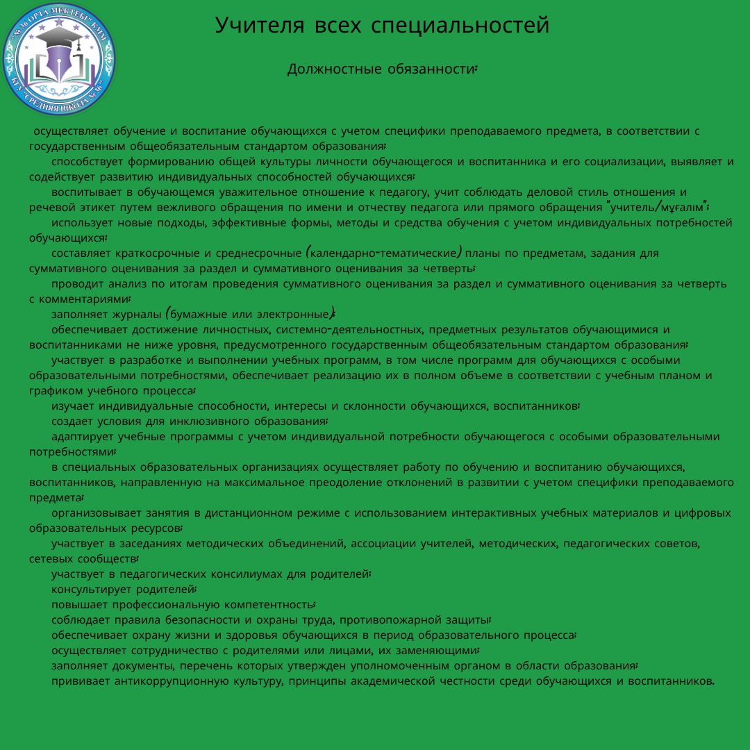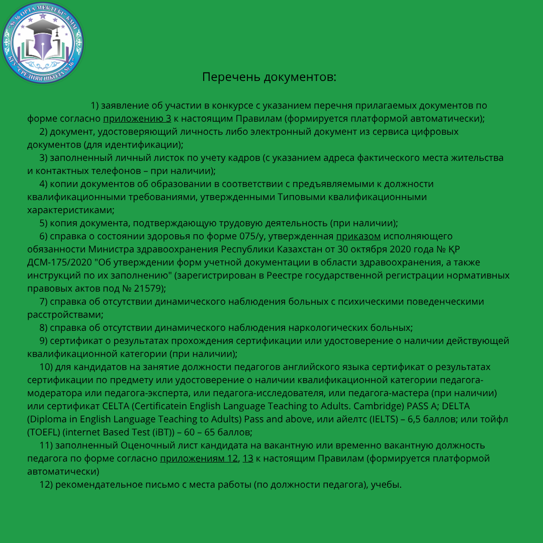Педагогтердің бос және уақытша бос лауазымдарына конкурс өткізу туралы хабарландыру/ Объявление о проведении конкурса на вакантные и временно вакантные должности педагогов