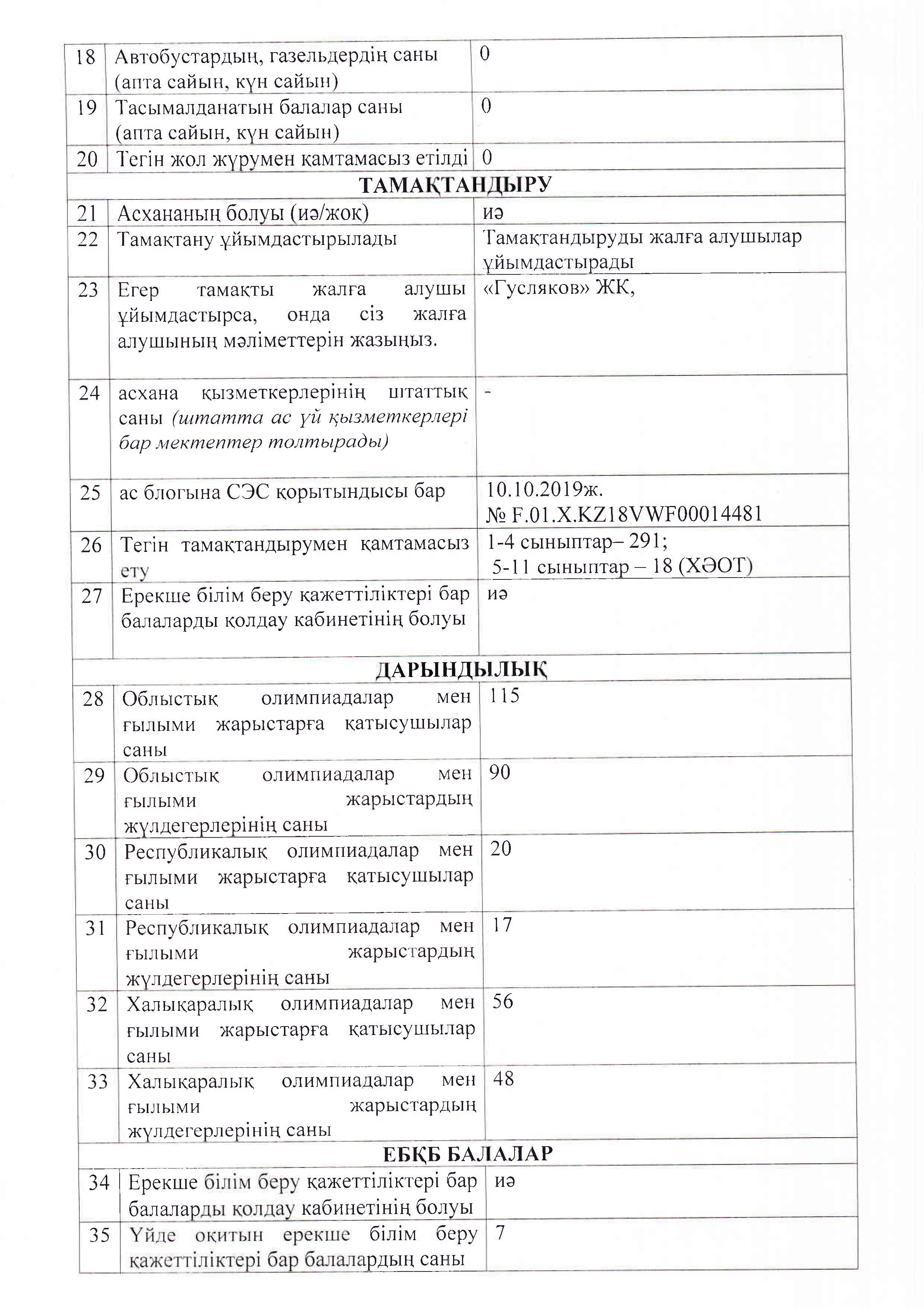 * Қаланың басқа мемлекеттік мектептерінде білім алады-260 адам.