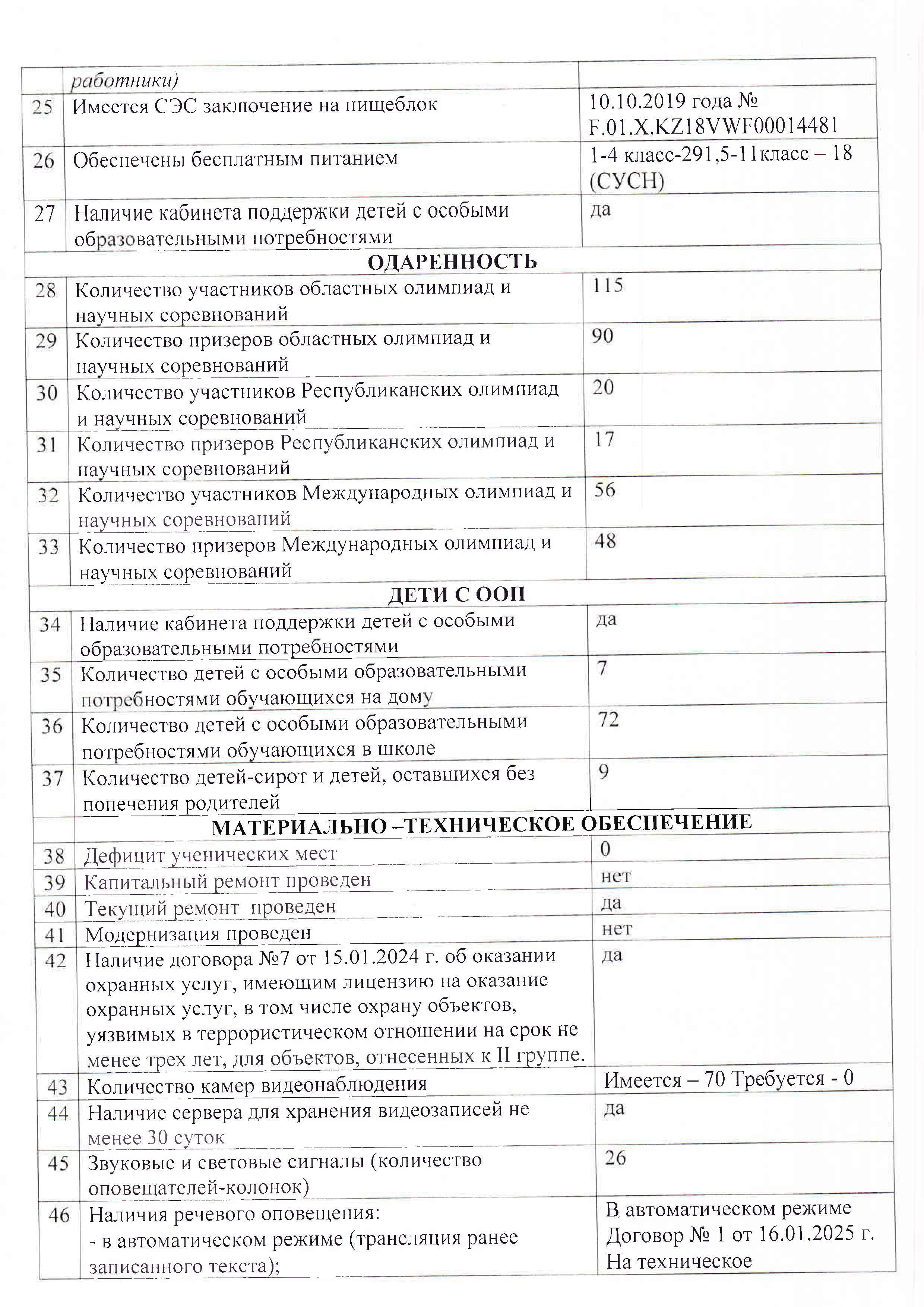 Сыныптар саны: 40 сынып, 932 оқушы: